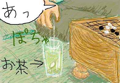 上手の人に打ってもらってる最中に、隣で打ってる人のお茶のコップに碁石が入ったのを見て、 「これが本当の碁石茶だ」とか思いました。 対局に集中してない証拠です。